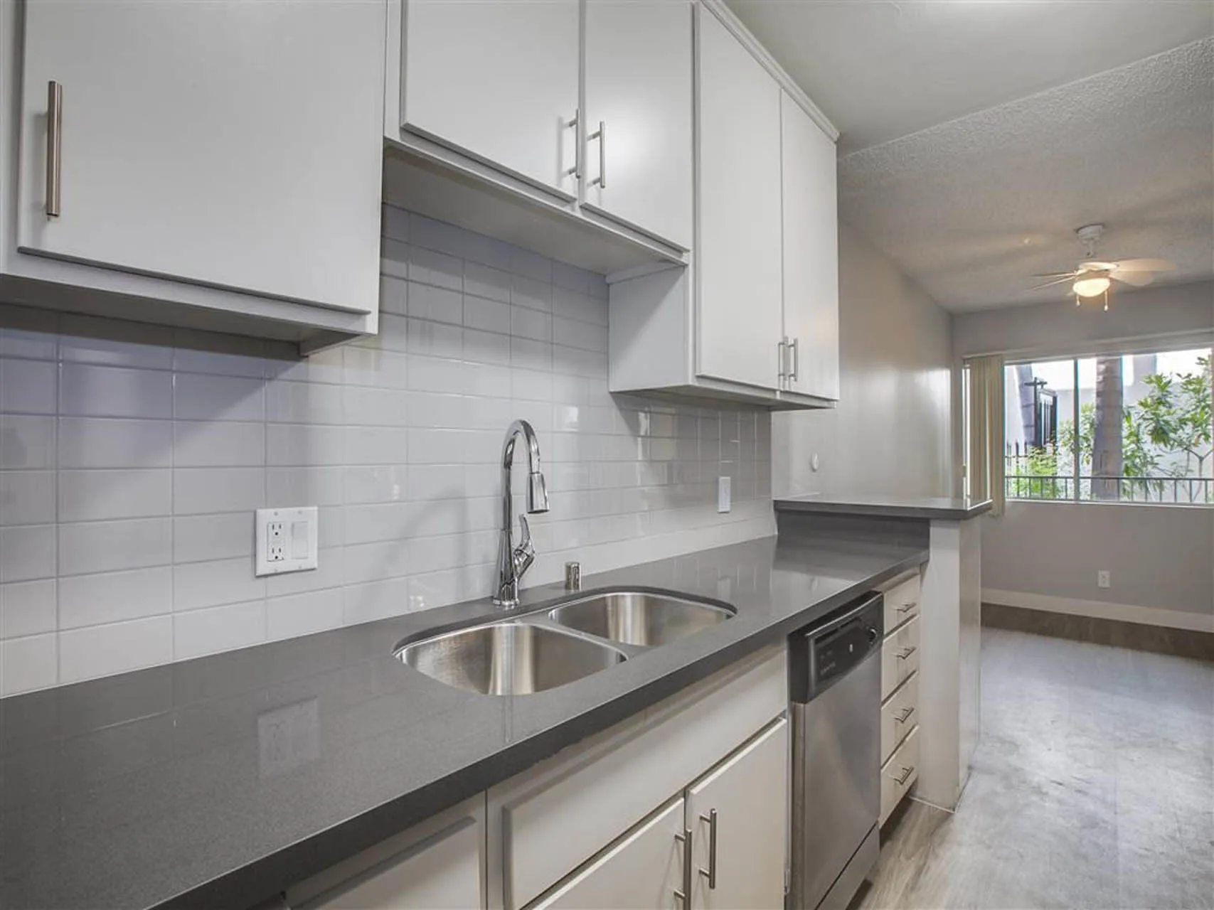 Candlewood North Apartments in Northridge, California, offers studio, one-, and two-bedroom homes designed for modern living. Each apartment features granite countertops with backsplash, spacious closets, and large terraces or balconies, providing a comfortable and stylish living environment.