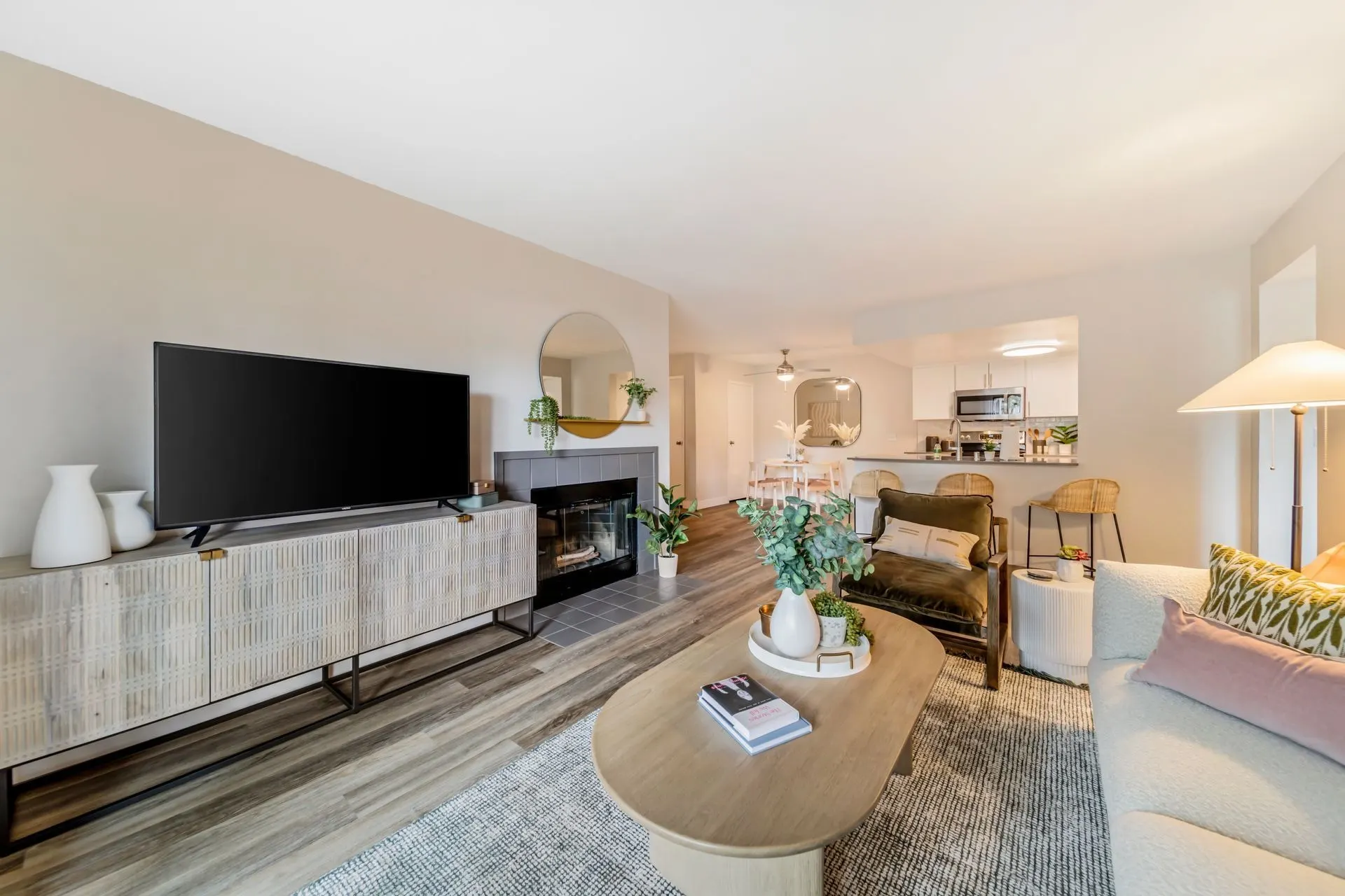 The one- and two-bedroom apartments are designed for comfort and style, featuring patios or balconies, oversized closets, carpeted floors, and kitchens equipped with efficient appliances such as electric ranges, microwaves, and dishwashers. Each home is cable-ready and includes central air conditioning and heating systems, as well as ceiling fans. Select units offer additional features like washer/dryer sets, fireplaces, and refrigerators.