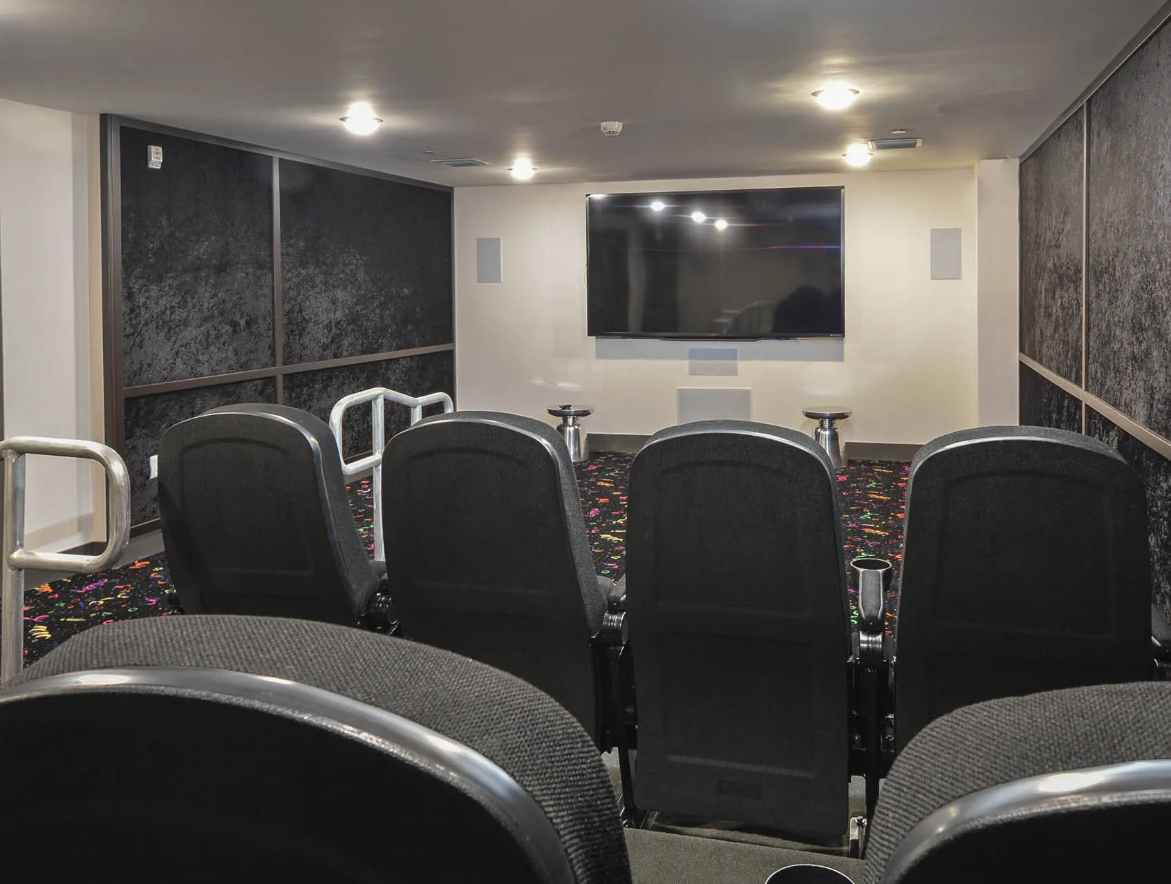 Residents can enjoy two resort-style swimming pools, two fitness studios, spacious sun decks with private cabanas, theater rooms, lounges, a business center, an outdoor play area, and a bark park for pets.