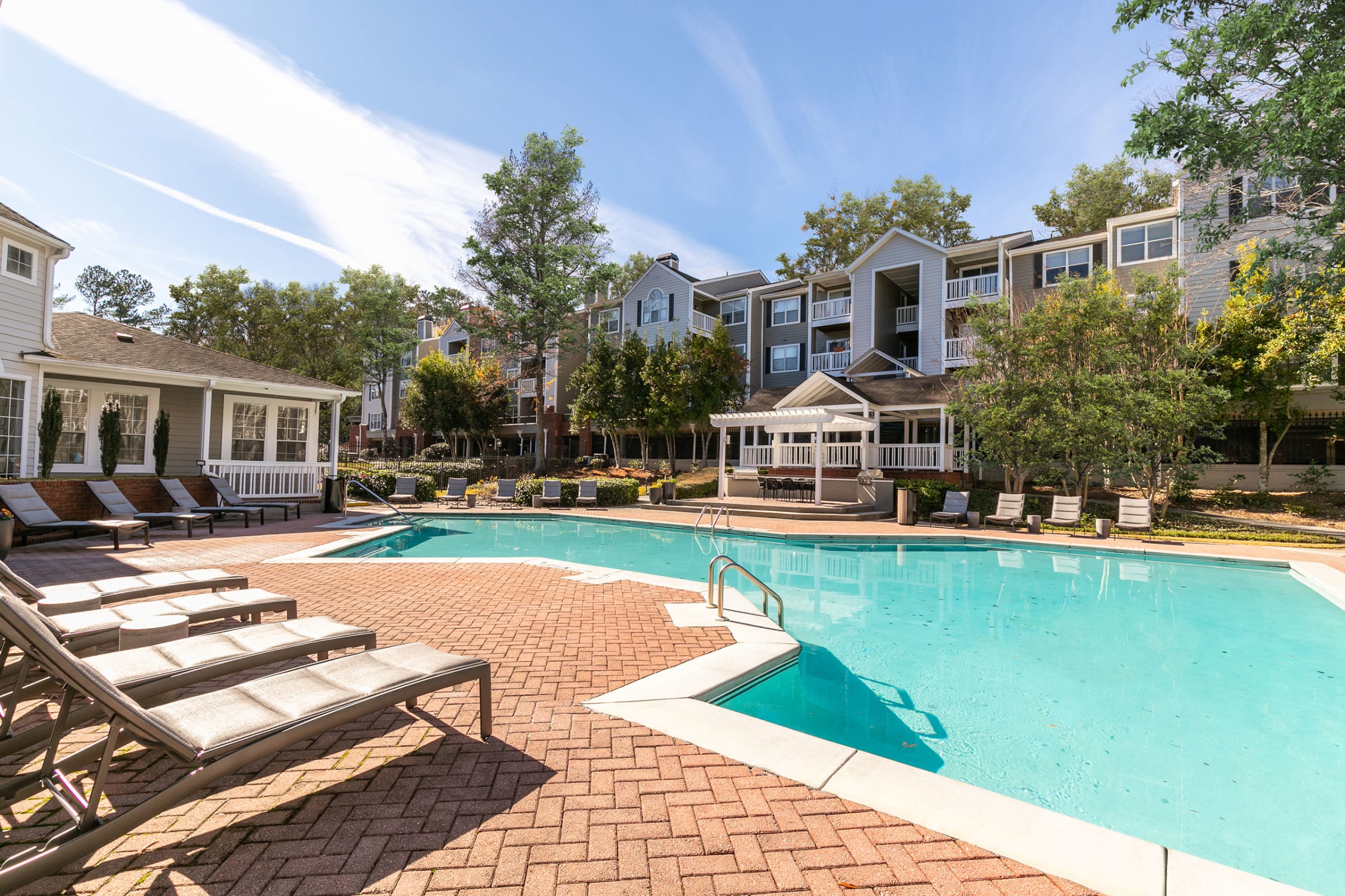 Residents can enjoy amenities such as a swimming pool with a poolside grill station, a fitness center, and a business lounge with a complimentary printer. The community is pet-friendly, ensuring that all pets are welcomed.